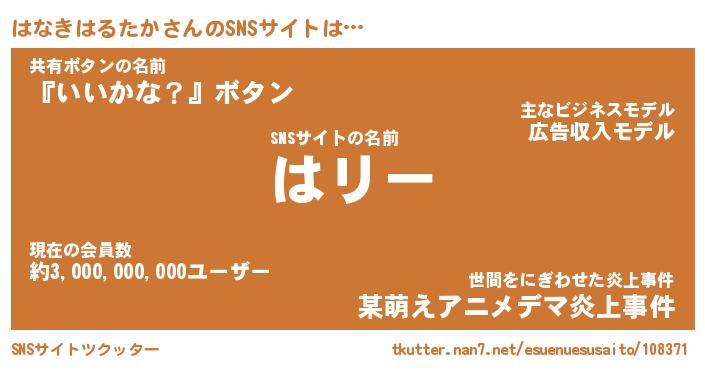 | ヘコむあだ名 | 『はなっふぃ~』『豆乳』『はなっぺ』 |