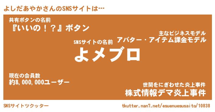 | ポケモン風あだ名 | 『ヨシチュウ』『ヨシダダネ』 |