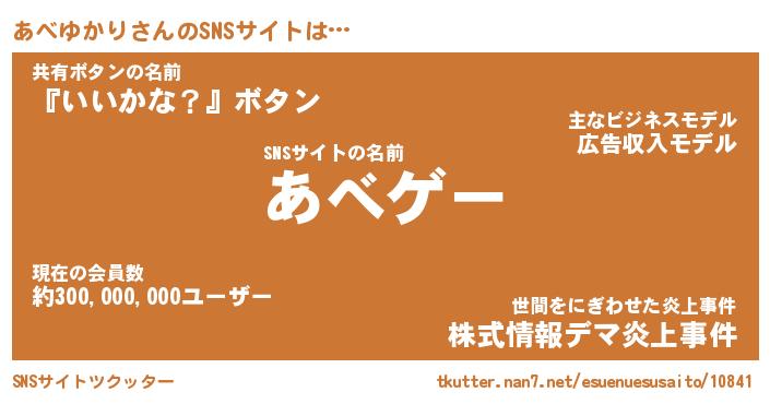 | 肩書あだ名 | 『あべゆかり社長』『あべゆかり総理大臣』 |