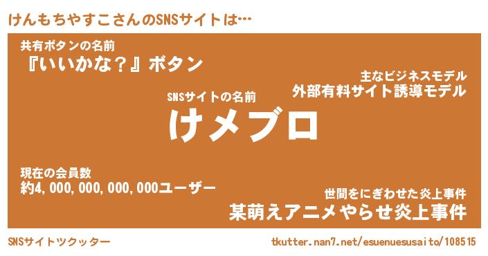 | 胡散臭い通販商品みたいなあだ名 | 『モテモテ間違いなし霊験あらたかなお札…その名も「けんもちやすこ」』 |