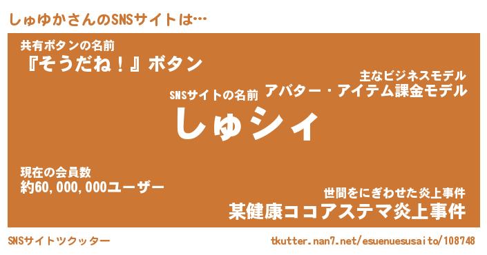 | ヒーロー風カッコイイあだ名 | 『スーパーシュユカ』『幻影騎士シュ』 |