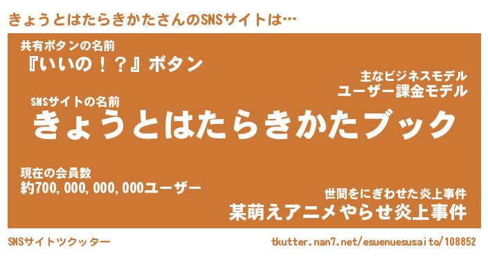 | 男性向けラノベタイトル風あだ名 | 『キョウトハタラキカタアートオンライン』 |
