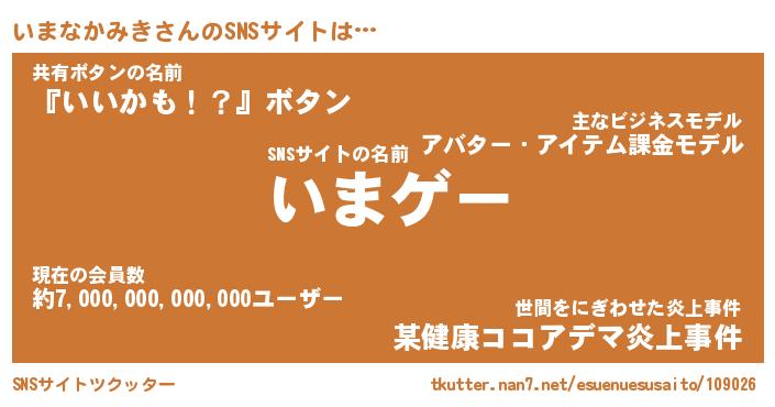 | 肩書あだ名 | 『いまなかみき店長』『いまなかみき教授』 |