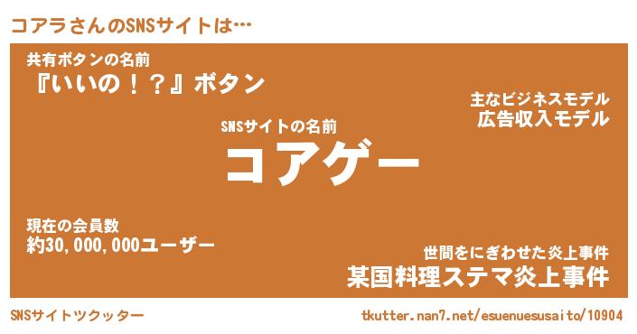 | ヘコむあだ名 | 『コアにー』『レバニラ』『コアお』 |