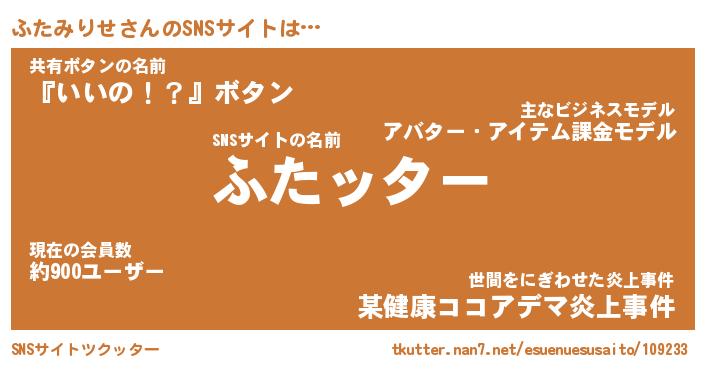 | ファンタジー風あだ名 | 『フタフェル』『エターナルフタミリセー』 |
