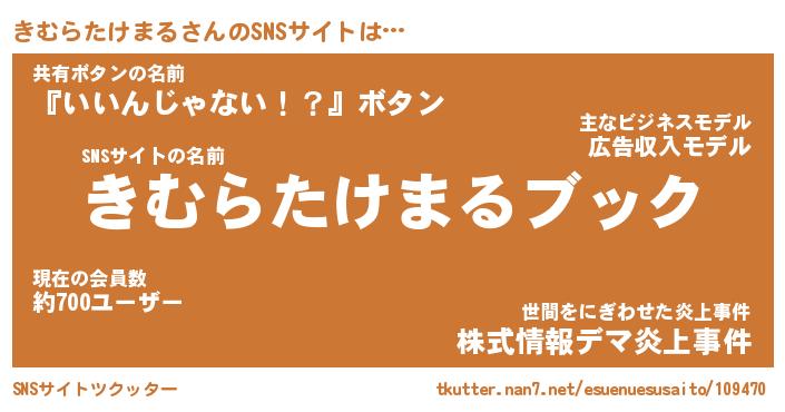 | 肩書あだ名 | 『きむらたけまるCEO』 |