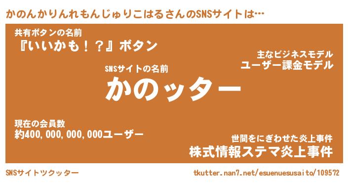 | 胡散臭い通販商品みたいなあだ名 | 『億万長者になれるブレスレット…その名も「かのんかりんれもんじゅりこはる」』 |