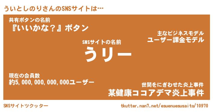 | ツイッター | ういとしのりさんのツイッターID『masyumaro_idle』 |