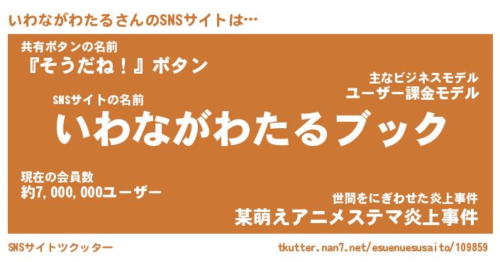 | 男性向けラノベタイトル風あだ名 | 『イワナガワタルアートオンライン』 |