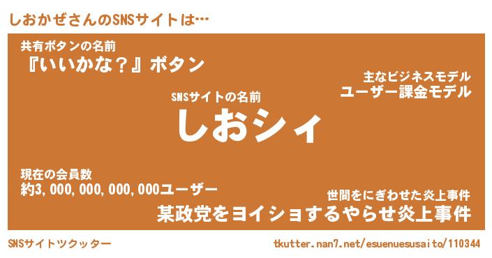 | 胡散臭い通販商品みたいなあだ名 | 『必ず成功する霊験あらたかなお札…その名も「しおかぜ」』 |