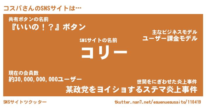 | ファンタジー風あだ名 | 『コスフェル』『エターナルコスパー』 |