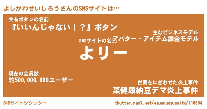 | 胡散臭い通販商品みたいなあだ名 | 『モテモテ間違いなし霊験あらたかなお札…その名も「よしかわせいしろう」』 |