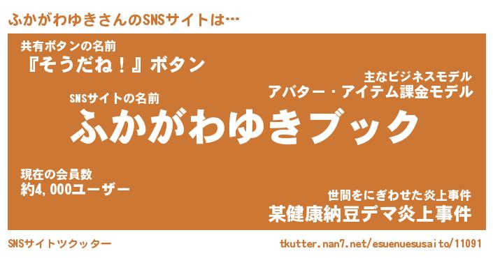 | 胡散臭い通販商品みたいなあだ名 | 『億万長者になれる霊験あらたかなお札…その名も「ふかがわゆき」』 |