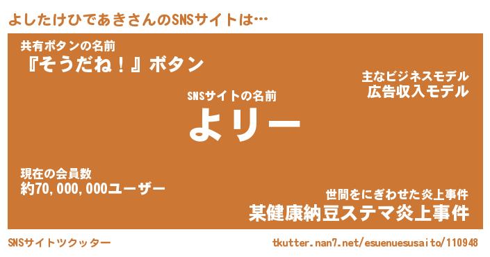 | 肩書あだ名 | 『よしたけひであき御曹司』 |