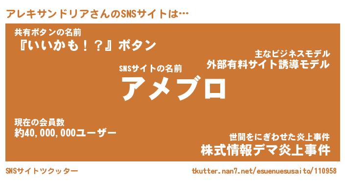 | 男性向けラノベタイトル風あだ名 | 『アレキサンドリアアートオンライン』 |