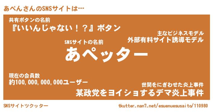 | ヘコむあだ名 | 『あぺにー』『牛乳』『あぺお』 |