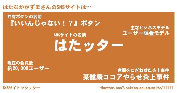 | 胡散臭い通販商品みたいなあだ名 | 『億万長者になれる水晶球…その名も「はたなかかずま」』 |