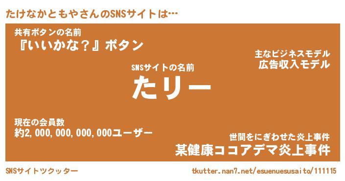 | 肩書あだ名 | 『たけなかともや御曹司』 |