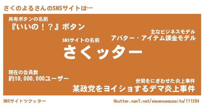 | 肩書あだ名 | 『さくのよる社長』『さくのよる大統領』 |