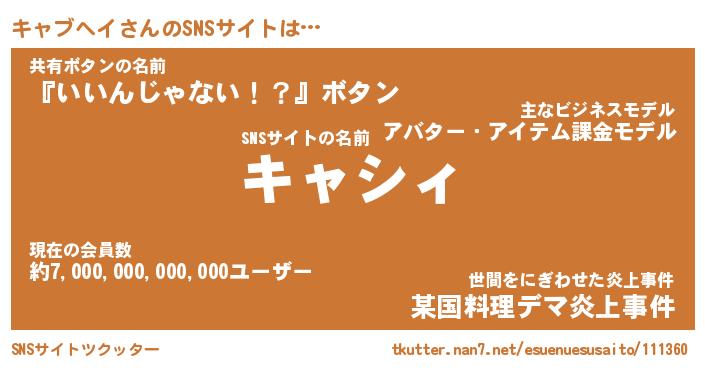 | 男性向けラノベタイトル風あだ名 | 『キャブヘイの憂鬱』 |