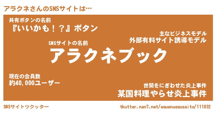 | 意味不明あだ名 | 『ペロリンアラクネ』『永久保存アラクネ』 |