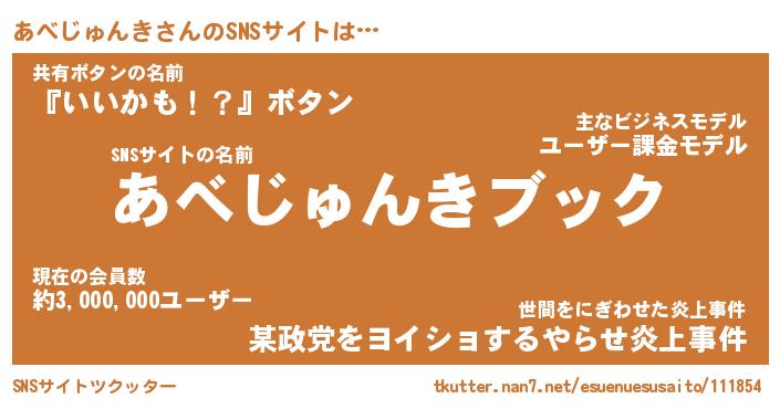 | 男性向けラノベタイトル風あだ名 | 『アベジュンキアートオンライン』 |