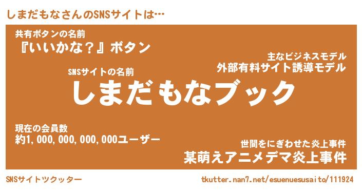 | 肩書あだ名 | 『しまだもな社長』『しまだもな総理大臣』 |