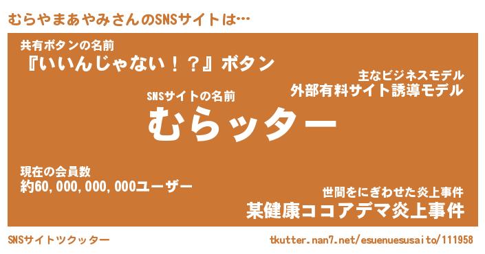 | 胡散臭い通販商品みたいなあだ名 | 『億万長者になれるブレスレット…その名も「むらやまあやみ」』 |