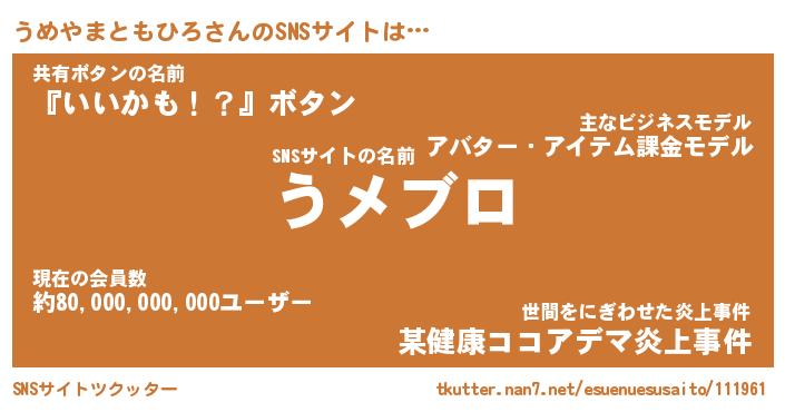 | 肩書あだ名 | 『うめやまともひろ御曹司』 |