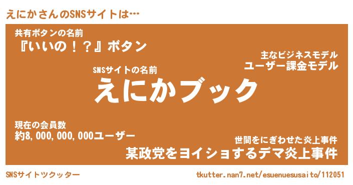 | 肩書あだ名 | 『えにか社長』『えにか国家主席』 |