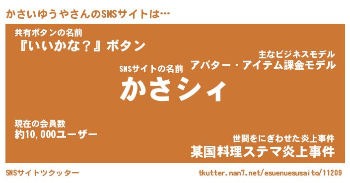 | ヒーロー風カッコイイあだ名 | 『スーパーカサイユウヤ』『魔戒騎士カサ』 |