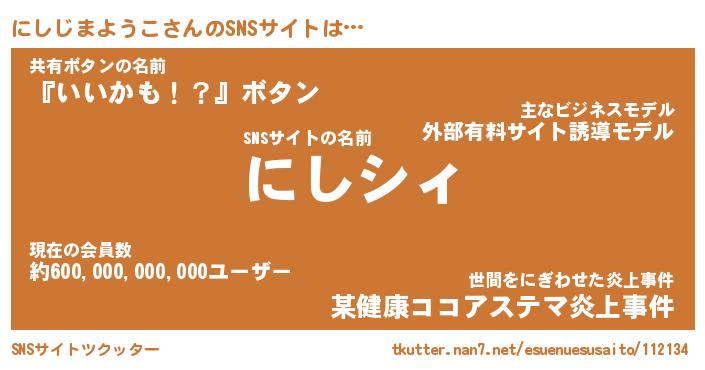 | ファンタジー風あだ名 | 『ニシフェル』『ファントムニシス』 |
