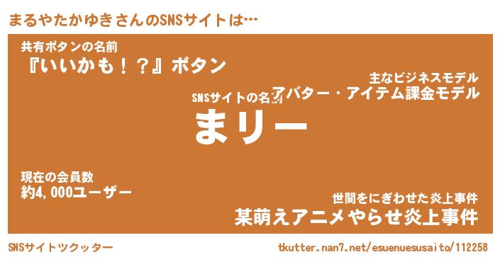 | 肩書あだ名 | 『まるやたかゆき社長』 |