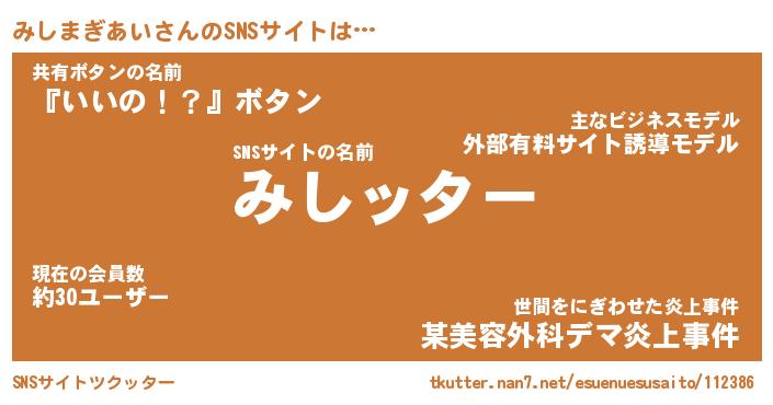 | 胡散臭い通販商品みたいなあだ名 | 『億万長者になれる水晶球…その名も「みしまぎあい」』 |