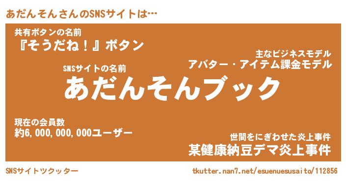 | 肩書あだ名 | 『あだんそん社長』『あだんそん総理大臣』 |