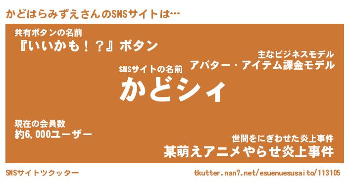 | 伝説のあだ名 | 『伝説のスナイパーかどはらみずえ』 |
