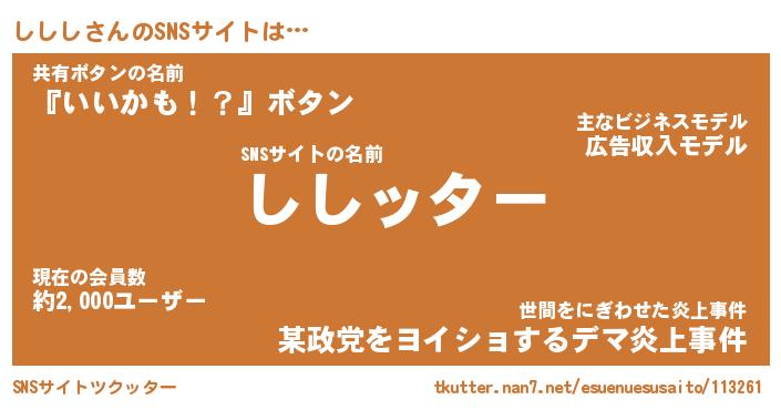 | ポケモン風あだ名 | 『シシチュウ』『シシシダネ』 |