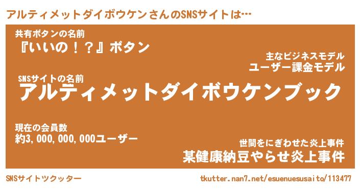 | 男性向けラノベタイトル風あだ名 | 『アルティメットダイボウケンアートオンライン』 |