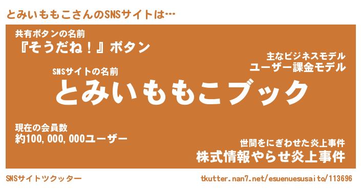 | 女子向けラノベタイトル風あだ名 | 『誰かこのとみいももこを説明してください! ~契約から始まるウェディング~』 |