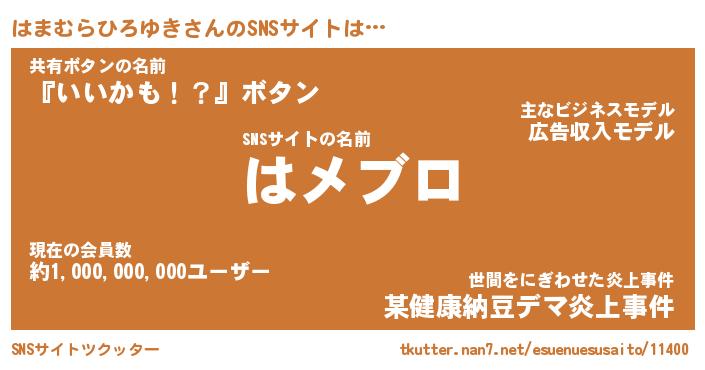 | 肩書あだ名 | 『はまむらひろゆき店長』 |