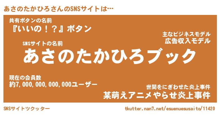 | 女子向けラノベタイトル風あだ名 | 『誰かこのあさのたかひろを説明してください! ~契約から始まるウェディング~』 |