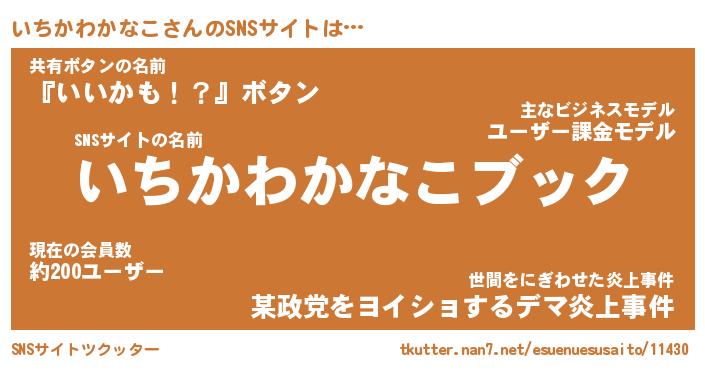 | 男性向けラノベタイトル風あだ名 | 『イチカワカナコアートオンライン』 |