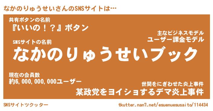 | 伝説のあだ名 | 『封印されしスナイパーなかのりゅうせい』 |