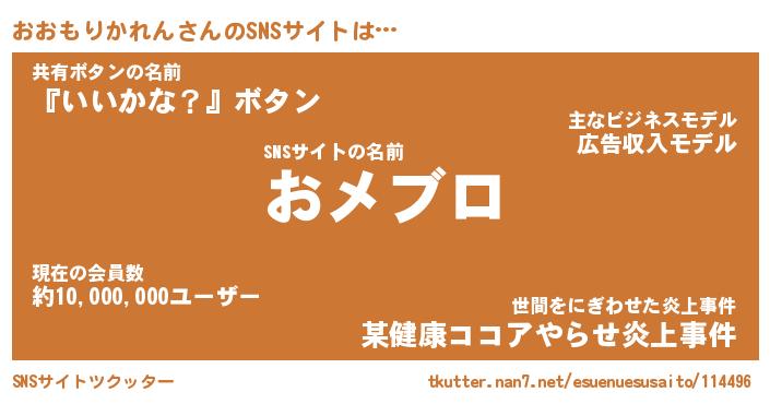 | 男性向けラノベタイトル風あだ名 | 『オオモリカレンアートオンライン』 |