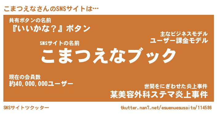 | ファンタジー風あだ名 | 『コマフェル』『エターナルコマツエナー』 |