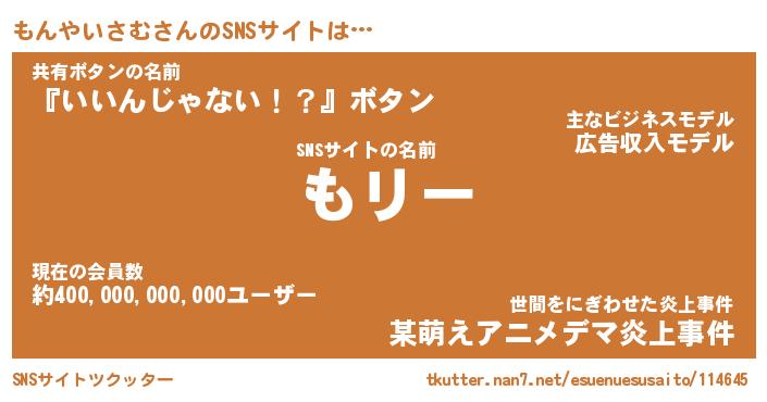 | 男性向けラノベタイトル風あだ名 | 『もんやいさむの憂鬱』 |