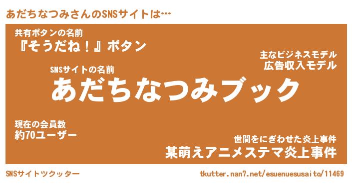 | 肩書あだ名 | 『あだちなつみ店長』『あだちなつみ団長』 |