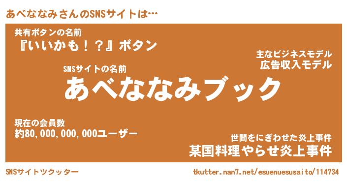 | 胡散臭い通販商品みたいなあだ名 | 『億万長者になれるブレスレット…その名も「あべななみ」』 |