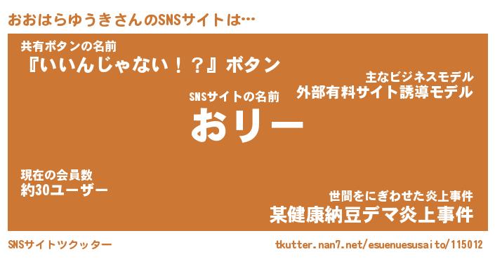 | 男性向けラノベタイトル風あだ名 | 『おおはらゆうきの憂鬱』 |
