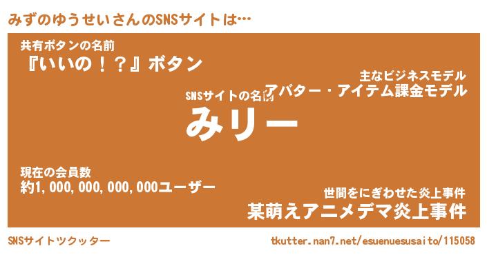 | 男性向けラノベタイトル風あだ名 | 『みずのゆうせいの憂鬱』 |